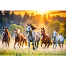 Motiv galopujících koní na zelené louce nadchne milovníky přírody i zvířat a stane se krásnou dominantou vašeho interiéru.