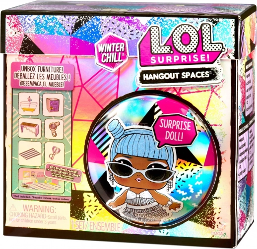 L.O.L. Surprise Winter Chill Hangout Spaces – sauna s panenkou Ice. Kompaktní, interaktivní set 9×15×15 cm na 3× LR44 pro kreativní zábavu dětí od 3 let.