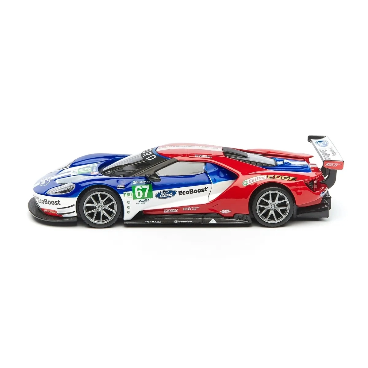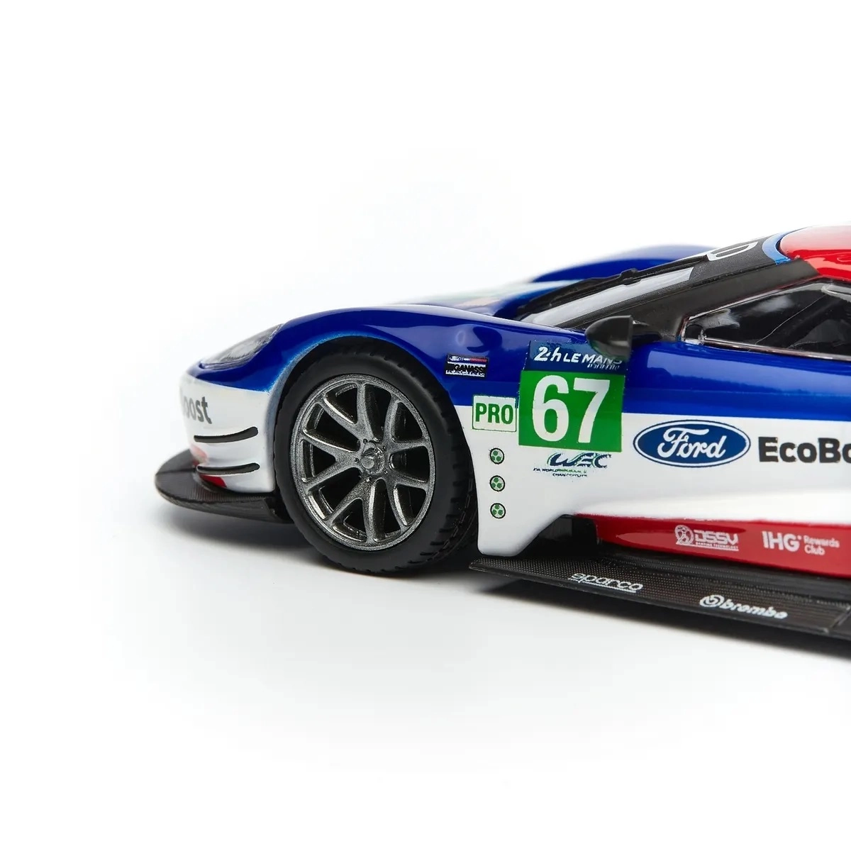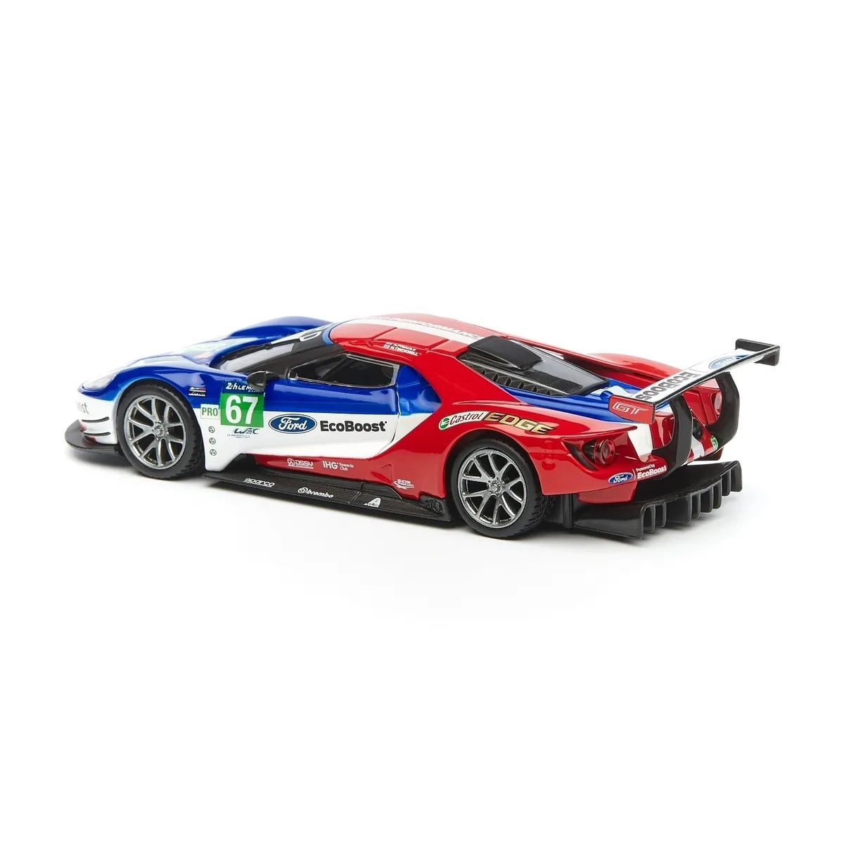 Originální potisky FORD, EcoBoost a startovní číslo 67 dodávají modelu závodní charakter, který vynikne ve vitríně i na fotkách.