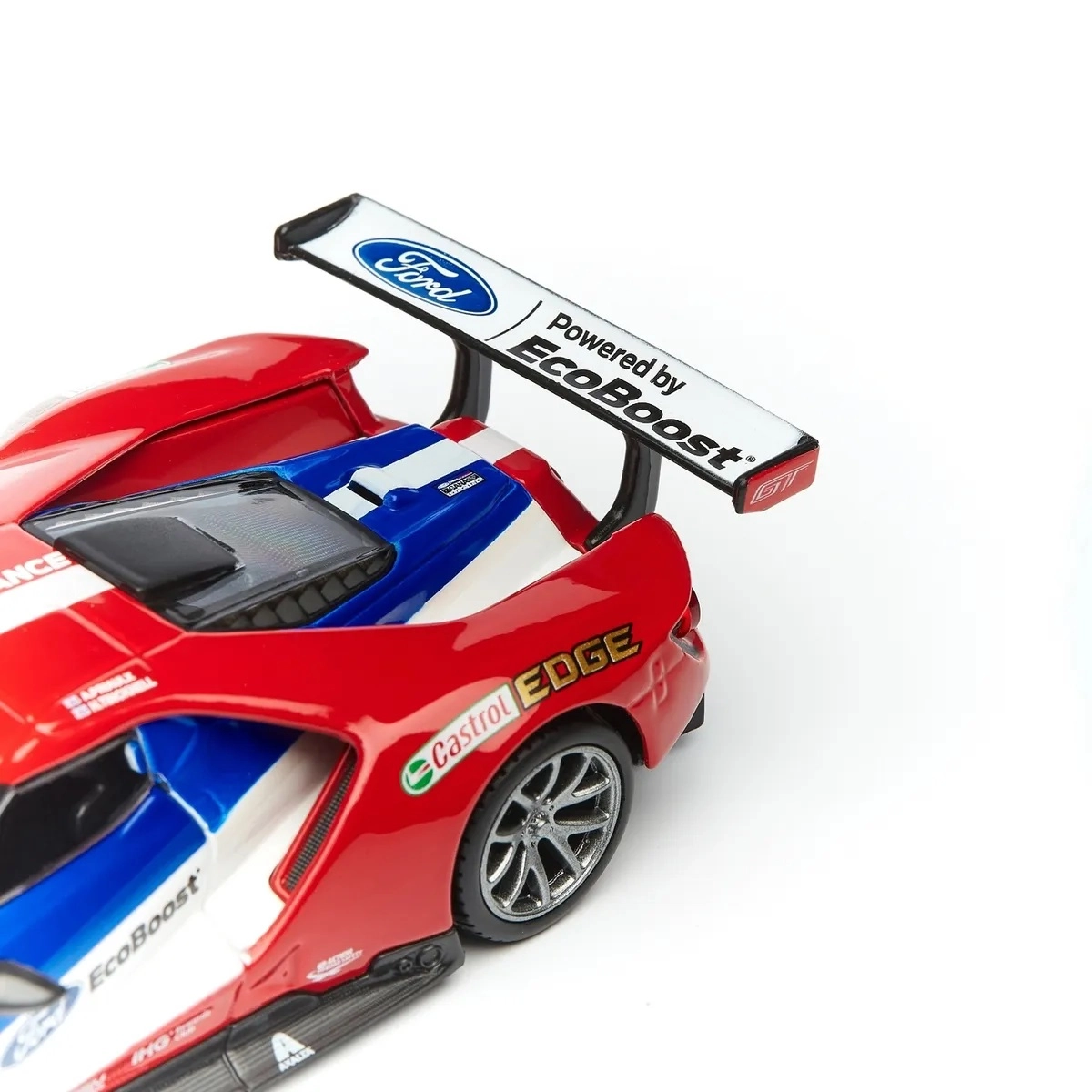 Velké zadní křídlo, difuzor a přední splitter věrně kopírují skutečný závodní speciál FORD GT pro maximální autentičnost.