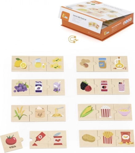 Každý pár dílků propojuje plodinu s výsledným produktem (např. citron → limonáda, kukuřice → popcorn). Děti si přirozeně osvojují vztahy a rozvíjejí logiku.