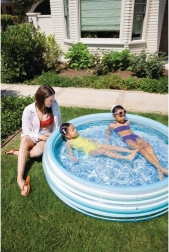 Udělejte dětem radost letním dováděním ve vodě! Tento nafukovací bazének s průměrem 147 cm a výškou 33 cm nabízí bezpečné brouzdaliště pro malé vodomily od 2 let. Díky třem vzduchovým komorám, měkčené protiskluzové podlaze a snadné instalaci je ideální na zahradu i dvůr.