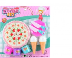 Tato kreativní sada je perfektní pro malé cukráře. Dětem umožňuje procvičovat si jemné motorické dovednosti při krájení dortu na dílky spojené suchým zipem. Sada obsahuje: