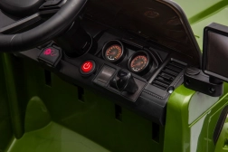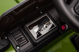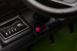 Autíčko disponuje moderním audio panelem s možností přehrávání MP3, vstupy pro SD kartu a USB, a tlačítky pro klakson a zvukové funkce na volantu.