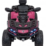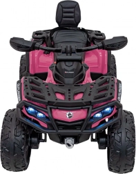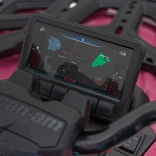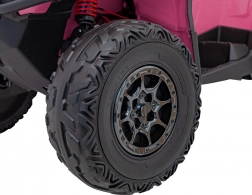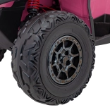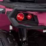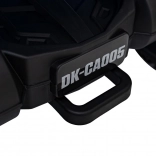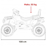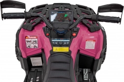 Komfortní jízdu podpoří zadní dvojité tlumiče, široké sedadlo z větrané ekokůže s bezpečnostními pásy a vysoký průjezdný světlý podvozek 19 cm. O skvělou atmosféru se postará audio panel s FM rádiem, Bluetooth, MP3, USB a AUX, nechybí indikátor nabití a praktické spínání klíčkem/tlačítkem Start.