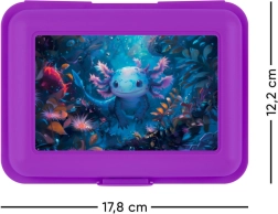 Elegantní fialový box s motivem axolotla dodá vašim jídlům hravý vzhled.