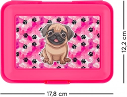 Růžový svačinový box s moderním designem a psem na víku je ideální volbou pro každého, kdo chce uchovávat své jídlo v bezpečí a přehledně. Díky centrální přepážce můžete jednotlivé potraviny skladovat odděleně, což předchází jejich smíchání během přenášení. Box je lehký a snadno přenosný, což z něj činí perfektního společníka na cesty, do školy nebo na pikniky.