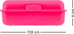 Box na svačinu je vybaven zámkem pro snadné uzavření, což zajišťuje bezpečné uchování obsahu.