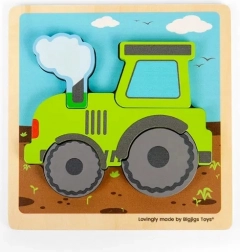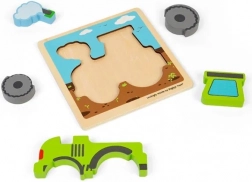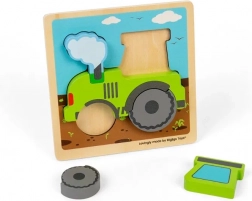 Objevte kouzlo dřevěného vkládacího puzzle s motivem traktoru, které je ideálně navrženo pro malé dětské ručičky. Skládá se z pěti robustních dílků, které jsou barevné a snadno uchopitelné. Správným umístěním dílků děti získají radost z hotového zeleného traktoru. Puzzle nejen baví, ale také podporuje: