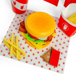 - 48 dílů, včetně housky, náplní, hranolků, nápoje, krabičky s sebou, ubrousků, menu a ochucovadel.