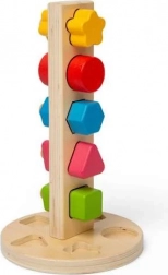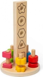 Tato chytrá vzdělávací hračka kombinuje zábavu a učení. Děti mohou šroubovat barevné tvary na kolík, třídit je podle obrysů na základně a procvičovat logické myšlení i prostorové vnímání. Odolné dřevěné provedení a bezpečné barvy zajišťují dlouhou životnost i bezstarostnou hru.