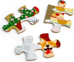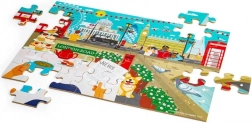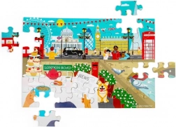Puzzle s ilustracemi ikonických londýnských památek, jako je Big Ben a London Eye.