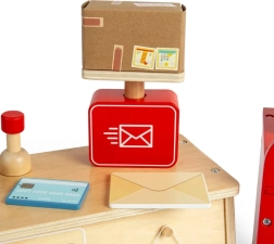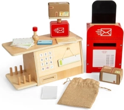 Zažijte, co vše se děje na poště s touto fascinující sadou pro děti od 3 let. Sada obsahuje poštovní schránku, pokladnu, váhu, pytel na balíky, balíky, dopisy a mnoho dalšího, co malí pošťáci potřebují ke své pracovní činnosti. Každý kousek je vyroben z udržitelného FSC® certifikovaného dřeva a natřen netoxickými barvami.