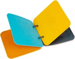 Knížka je vyrobena z netoxického potravinářského silikonu, který je bezpečný a šetrný k citlivé dětské pokožce.