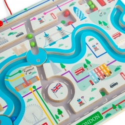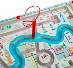 Vydejte se na dobrodružnou cestu po rušných ulicích Londýna s tímto stylovým magnetickým bludištěm. Pomocí červeného magnetického pera mohou děti vést 15 magnetických kuliček bludištěm, zatímco poznají ikonické památky jako Buckinghamský palác, London Eye a Tower Bridge. Magnetické bludiště nejen že děti zabaví, ale i pomáhá rozvíjet jejich dovednosti v řešení problémů.