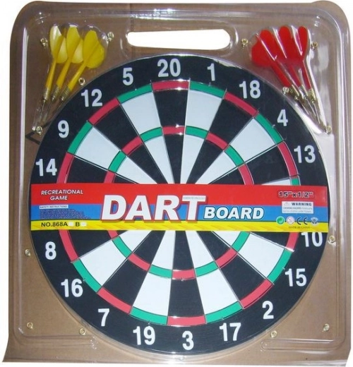 Kompletní sada pro domácí zábavu: terč o průměru 37 cm a 6 šipek ve dvou barvách. Ideální pro rodinu i přátele, snadné zavěšení a okamžitá hra bez dokupování příslušenství.