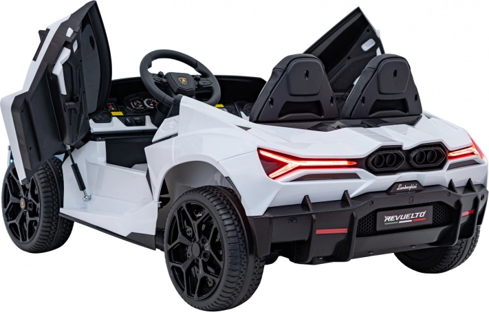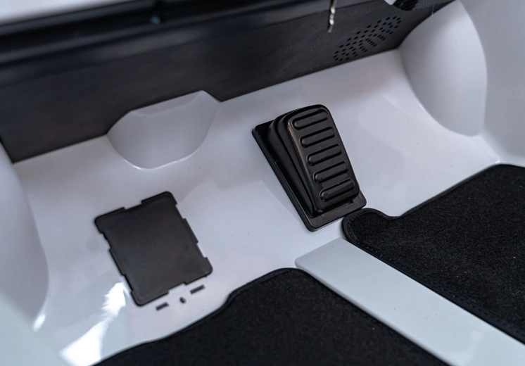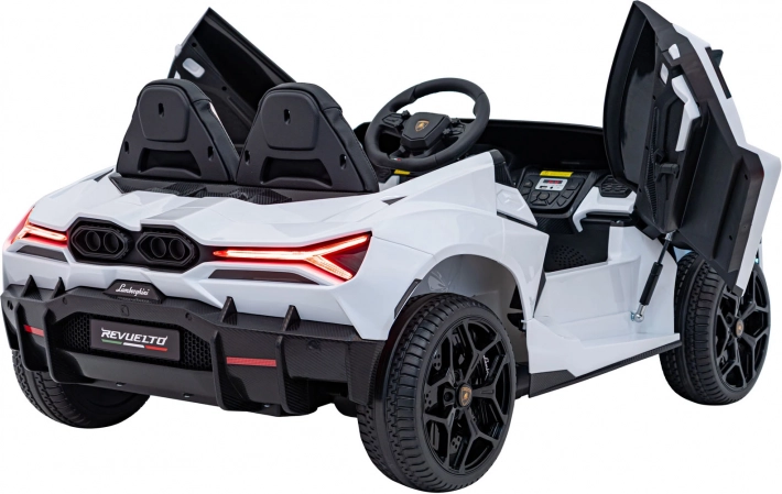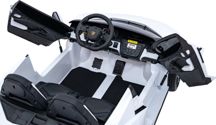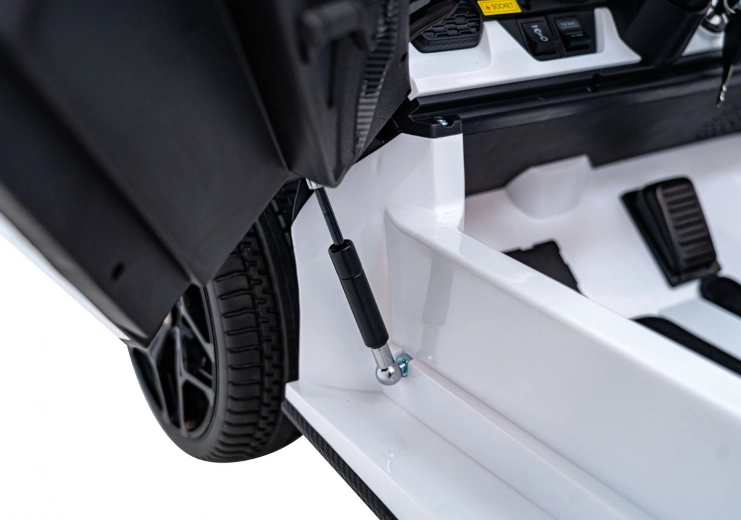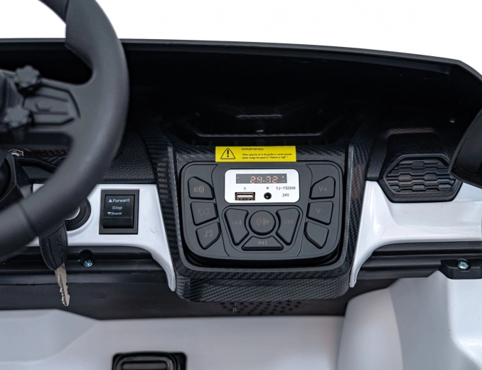 Rodiče ocení dálkové ovládání 2,4 GHz se 3 rychlostmi a nouzovým tlačítkem Stop. Děti se zabaví u multimediálního panelu s FM rádiem, Bluetooth, USB, MP3 a vstupem AUX. Dvojité sedadlo z eko kůže s bezpečnostními pásy poskytne komfort i dvěma jezdcům, praktický ukazatel nabití pohlídá stav baterie a otevírací scissor dveře dotvářejí autentický zážitek.