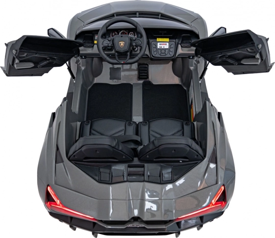 Otevírací nůžkové dveře, detailní karoserie a jasné LED osvětlení vpředu i vzadu vytváří autentický vzhled superauta LAMBORGHINI, který děti milují.