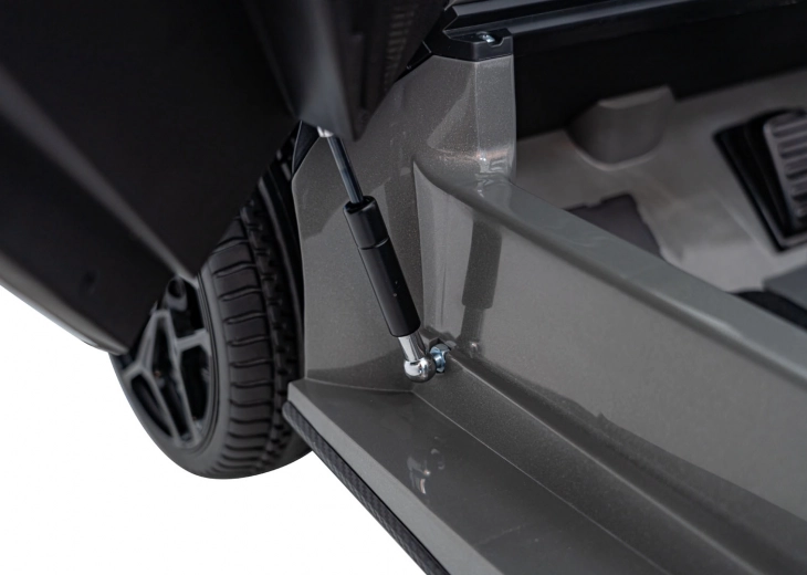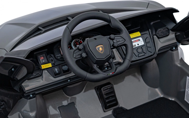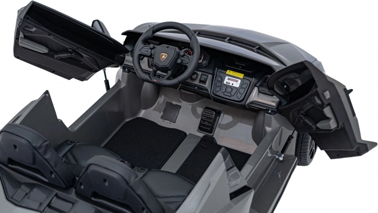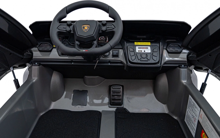 Rodiče ocení dálkový ovladač 2,4 GHz se Safety Stop a možností volby 3 rychlostí. Děti si užijí plynulý rozjezd, jízdu vpřed/vzad, otevírací nůžkové dveře, pohodlná eko-kůže sedadel a bohatou výbavu infotainmentu – FM, Bluetooth, USB, MP3, AUX, efekty a klakson na volantu.