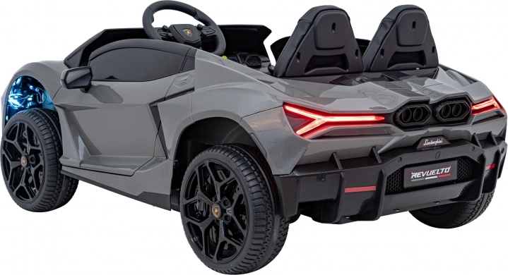 Stylové elektrické autíčko pro děti inspirované superautem LAMBORGHINI Revuelto nabídne dvoumístné sezení, silný pohon 4x200 W, baterii 24 V 7 Ah, měkká EVA kola a otevírací výklopné (scissor) dveře. Pro bezpečnou jízdu nechybí dálkové ovládání 2,4 GHz s funkcí Stop, bezpečnostní pásy a LED světla vpředu i vzadu. Zábavu podpoří FM rádio, Bluetooth, USB, MP3 i AUX.