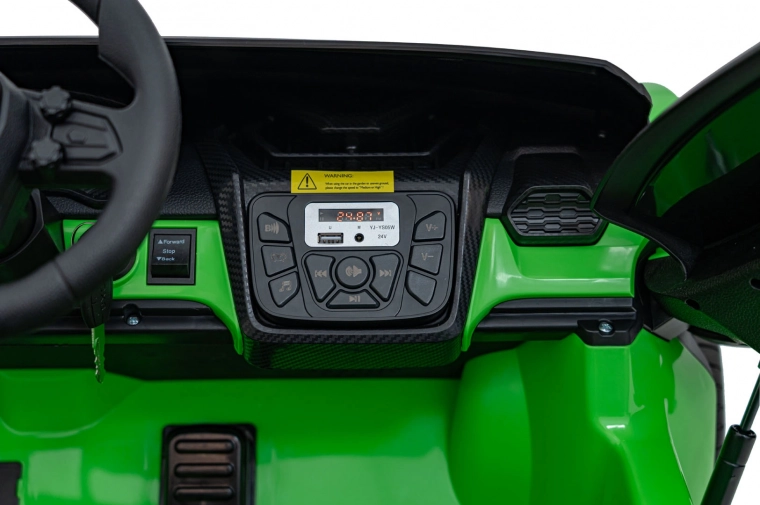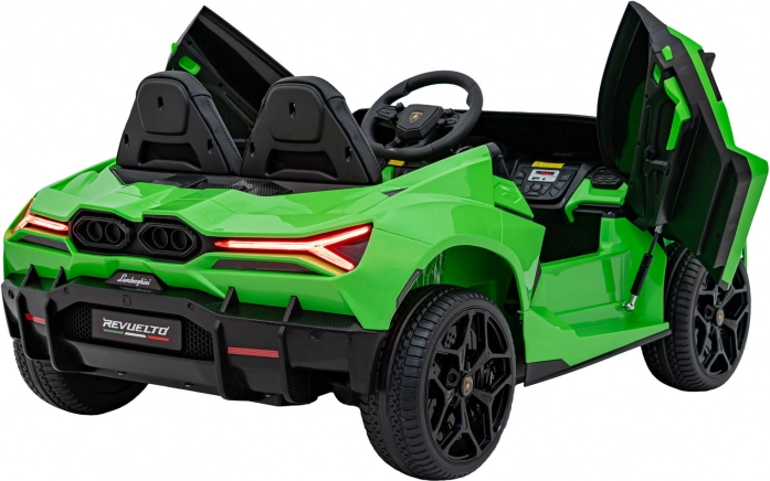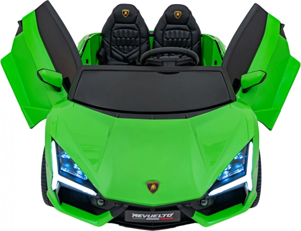 Luxusní dětské elektrické autíčko LAMBORGHINI REVUELTO XL v zelené barvě nadchne realistickým vzhledem, výklopnými lambo dveřmi, silným pohonem 4x200 W a baterií 24 V / 7 Ah. Dvě sedadla z ekokůže s bezpečnostními pásy, LED světlomety vpředu i vzadu a audio panel s FM, Bluetooth, USB a MP3 promění každou jízdu v zábavu – řízení dítětem nebo rodičovským dálkovým ovladačem 2,4 GHz se stop tlačítkem.