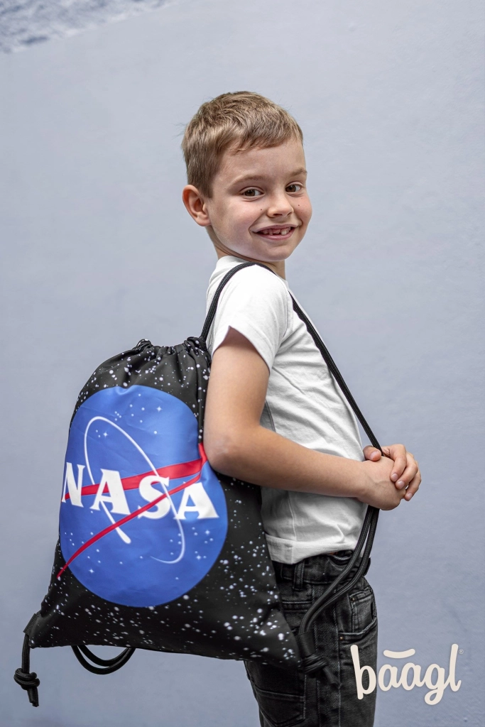 Stylový vak na záda s logem NASA od značky Baagl je ideální na cvičky, přezůvky i drobnosti do školy či na volný čas. Vyroben z pevného omyvatelného materiálu a vybaven pevnými tkanicemi pro snadné zavírání i pohodlné nošení na zádech.
