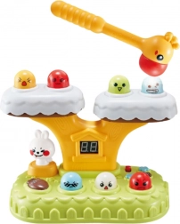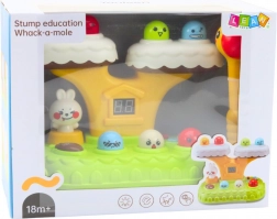 Hra Whack‑a‑Mole přináší klasickou „mlácenou“ zábavu v moderním provedení. Barevné postavičky vyskakují z kmene stromu, dítě je trefuje měkkým kladívkem a sleduje svůj postup na digitálním počítadle bodů. 20 vestavěných melodií a světelné efekty vytvářejí veselou atmosféru, přičemž otáčející se králíček ještě umocňuje interakci.