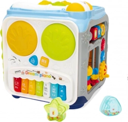 Tato interaktivní kostka aktivit je navržena tak, aby rozvíjela smyslové vnímání, jemnou i hrubou motoriku a logické myšlení dětí. Díky pestré škále funkcí láká k průzkumu, podporuje soustředění i koordinaci oko–ruka a motivuje k samostatné i společné hře.