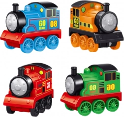 Tato sada obsahuje čtyři různobarevné lokomotivy, které umožňují dětem vytvářet vlastní herní scénáře, sestavovat tratě a hrát si na strojvůdce. Hračka je vyrobena z vysoce kvalitního plastu, který je zcela bezpečný pro děti. Lokomotivy mají kompaktní rozměry, což usnadňuje jejich uchopení a posouvání v dětských ručkách.