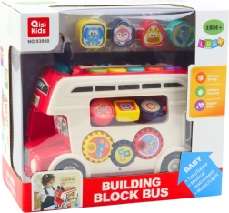 Autobus je vybaven otvory pro kostky s písmeny, které dítě může přizpůsobovat příslušným místům, čímž rozvíjí své pozorovací dovednosti a přesnost pohybů. Na bočních stěnách jsou otočné mechanismy a interaktivní prvky, které poskytují další smyslové podněty a podporují aktivní zkoumání.
