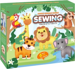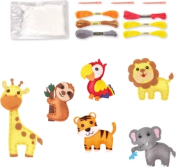 Objevte zábavnou kreativní sadu pro děti, se kterou si samy ušijí roztomilá zvířátka z džungle. Souprava rozvíjí jemnou motoriku, kreativitu a trpělivost, zároveň bezpečně učí základy šití díky plastovým jehlám. V balení je vše potřebné pro vytvoření 6 zvířátek – lva, tygra, žirafy, papouška, opičky a slona.