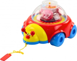 Veselá tahací beruška pro nejmenší přináší spoustu zábavy i učení. Při jízdě se pod průhlednou kopulí roztáčejí barevné kuličky a nahoře čekají otočné hodiny pro první seznamování s časem. Díky tahací šňůrce podporuje první krůčky, koordinaci pohybů a motoriku dětí od 12 měsíců.