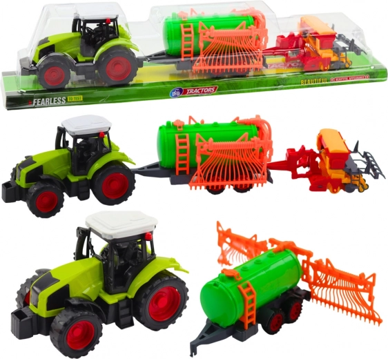 Sada je zabalena v originálním průhledném boxu – ideální jako dárek pro malé milovníky zemědělských strojů.