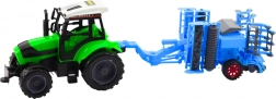 Zelený traktor, modrá talířová brána