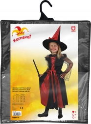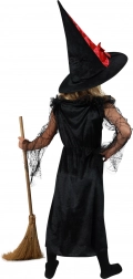 Dopřejte své holčičce magický vzhled, který zaujme na každé párty. Černo‑červené šaty s jemnou pavučinkovou krajkou na rukávech doplňuje špičatý klobouk s mašlí – dohromady vytvářejí autentický čarodějnický kostým pro děti, ve kterém se bude cítit skvěle.