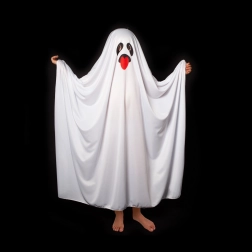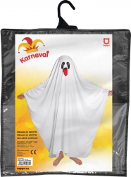 Roztomilý a strašidelný kostým ducha pro děti ve věku 3–7 let nabídne snadné převlečení na Halloween, karneval i školní besídky. Je z lehkého materiálu, má pohodlný střih a otevry pro oči pro bezpečný výhled. Univerzální bílý plášť s potiskem obličeje a délkou cca 106 cm od hlavy se hodí pro kluky i holky.