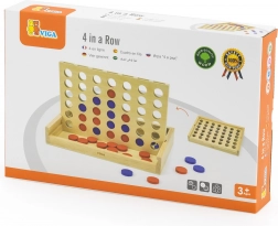 Dřevěná logická hra 4 v řadě od značky Viga je ideální pro děti i dospělé, kteří milují strategické výzvy. Cílem je umístit čtyři žetony do jedné linie – vodorovně, svisle nebo šikmo. Tato klasická a kompaktní stolní hra nabízí rodinnou zábavu, rozvíjí logické myšlení a trénuje strategii i trpělivost.