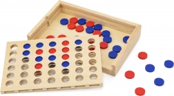 Oblíbená hra 4 v řadě v kvalitním dřevěném provedení přináší nadčasovou zábavu, která baví napříč generacemi. Postavte se proti soupeři a jako první složte čtyři žetony do jedné řady. Díky pevnému materiálu a čistému designu je hra odolná, estetická a skvěle se hodí do každé domácnosti.