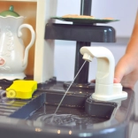 Stiskem pumpičky začne téct voda z kohoutku. Díky uzavřenému okruhu je hraní čisté, zábavné a bez nepořádku.
