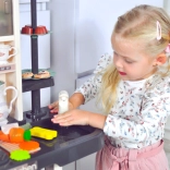 Dětská kuchyňka Woopie Home Kitchen promění hraní na kuchaře v realistický zážitek. Zapnutím otočného knoflíku se aktivuje hořák se světlem, zvukem vaření a bezpečnou párou, digestoř nabídne melodie a osvětlení s nastavitelnou hlasitostí a kohoutek s uzavřeným okruhem vody umožní dětem "mýt nádobí" bez rozlití.