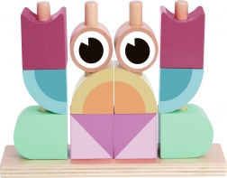 Kvalitní dřevo a bezpečné barvy zajišťují odolnost a bezpečí při hře. Jemné pastelové odstíny lákají ke kreativnímu skládání.