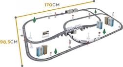 Dlouhá dráha, tunel, budovy, stromy, lampy a značky vytvářejí poutavé prostředí pro rozvoj fantazie a příběhové hry.