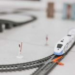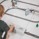 Tato moderní elektrická vláčkodráha WOOPIE přináší dětem dlouhé hodiny zábavy a učení. Pětivozová souprava typu Pendolino sviští po trati dlouhé 9,14 m, prosvětluje cestu červeným světlem a díky regulaci rychlosti se snadno přizpůsobí tempu hry. Skvělou atrakcí je zvedací most ovládaný tlačítkem a dekorativní tunel, které dodají jízdě napětí a realističnost.