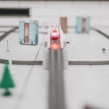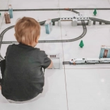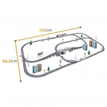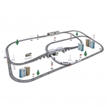 Dlouhá dráha, tunel, budovy, stromy, lampy a značky vytvářejí poutavé prostředí pro rozvoj fantazie a příběhové hry.