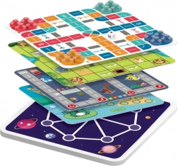 Set nabízí pestrou kombinaci klasických her i logických úkolů – od dámu a piškvorek po labyrinty a prostorové skládanky. Děti si procvičí různé dovednosti bez stereotypu.