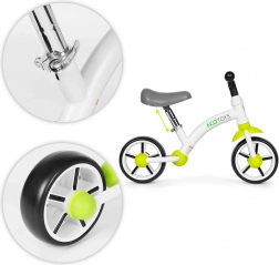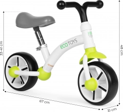 Lehké dětské odrážedlo ECOTOYS pomáhá dětem od 3 let rozvíjet rovnováhu, koordinační schopnosti a jistotu při jízdě. Má práškově lakovaný ocelový rám, odolná EVA kola bez údržby, nastavitelnou výšku sedla a zámek řízení pro bezpečnější ovládání. Vhodné pro domácí i venkovní použití, s maximální nosností 30 kg a předním blatníkem proti nečistotám.