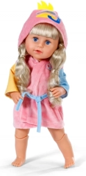 Dopřejte své panence po koupání pohodlí a styl s tímto měkoučkým županem BABY born pro velikost 43 cm. Díky kapuci s vtipným motivem kačenky, barevným rukávům a příjemnému materiálu je to ideální doplněk pro fantazijní hru. Župan skvěle sedí i na BABY born Teddy a součástí je ramínko z recyklovaného materiálu.