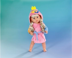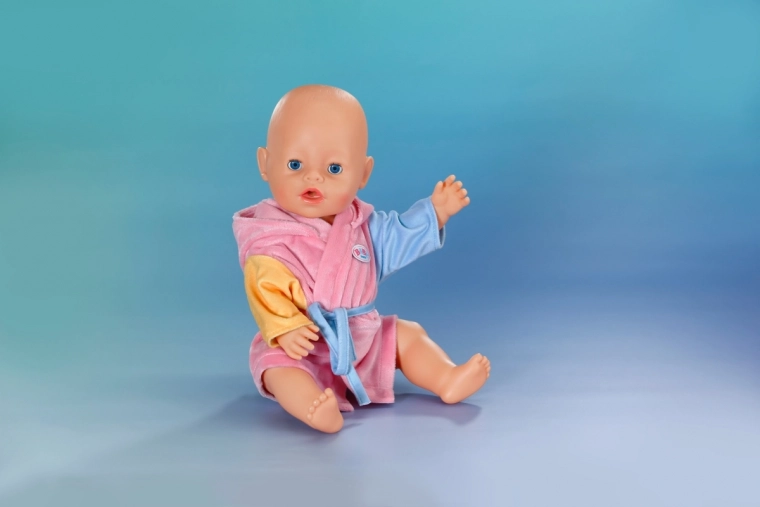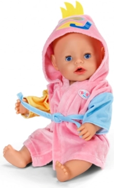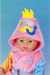 Roztomilý župan pro panenky BABY born ve velikosti 43 cm přináší po koupání i během hry maximální pohodlí. Růžové provedení s barevnými rukávy a kapucí s kačenkou zaujme na první pohled a podpoří dětskou představivost při pečovatelských scénářích.