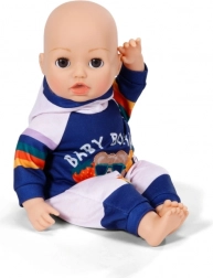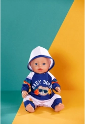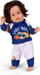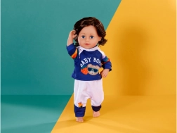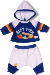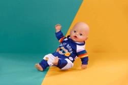 Stylová tepláková souprava pro panenky velikosti 43 cm dodá hraní nový rozměr. Set obsahuje mikinu s kapucí a kalhoty v modro‑bílé kombinaci s hravými duhovými pruhy a potiskem BABY BORN. Obleček se snadno obléká i svléká, je ideální pro role-play, rozvoj jemné motoriky a podporu fantazie dětí od 3 let.