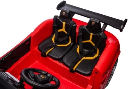 Červené elektrické autíčko 4x4 pro děti splní sen každého malého milovníka aut. Díky realistickým prvkům, jako jsou tvarované karoserie, detailní kola a věrohodný interiér se dvěma sedadly, působí jako opravdový sportovní vůz. Otevírací dveře usnadňují nastupování a podtrhují autentický zážitek z jízdy.